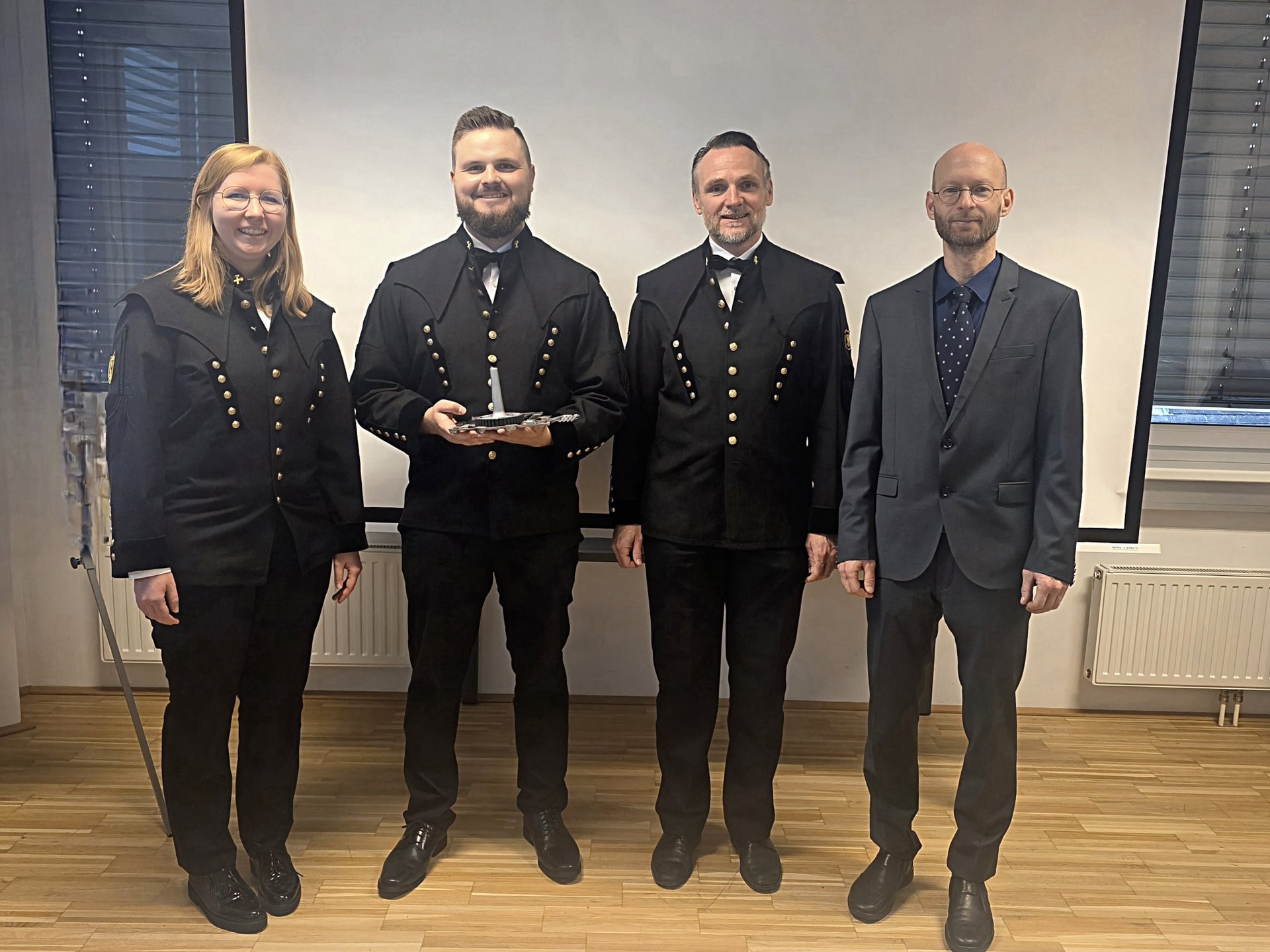 f.l.t.r.: Vorsitz: Priv.-Doz. Ass.Prof. Dipl.-Ing.Dr.mont Eva Gerold; Dipl.-Ing. Sebastian Huber; 2. Prüfer: Univ.-Prof. Dipl.-Ing. Dr.mont. Peter Hofer-Hauser; 1. Prüfer: assoz.Prof. Dipl.-Ing. Dr.mont. Thomas Lucyshyn