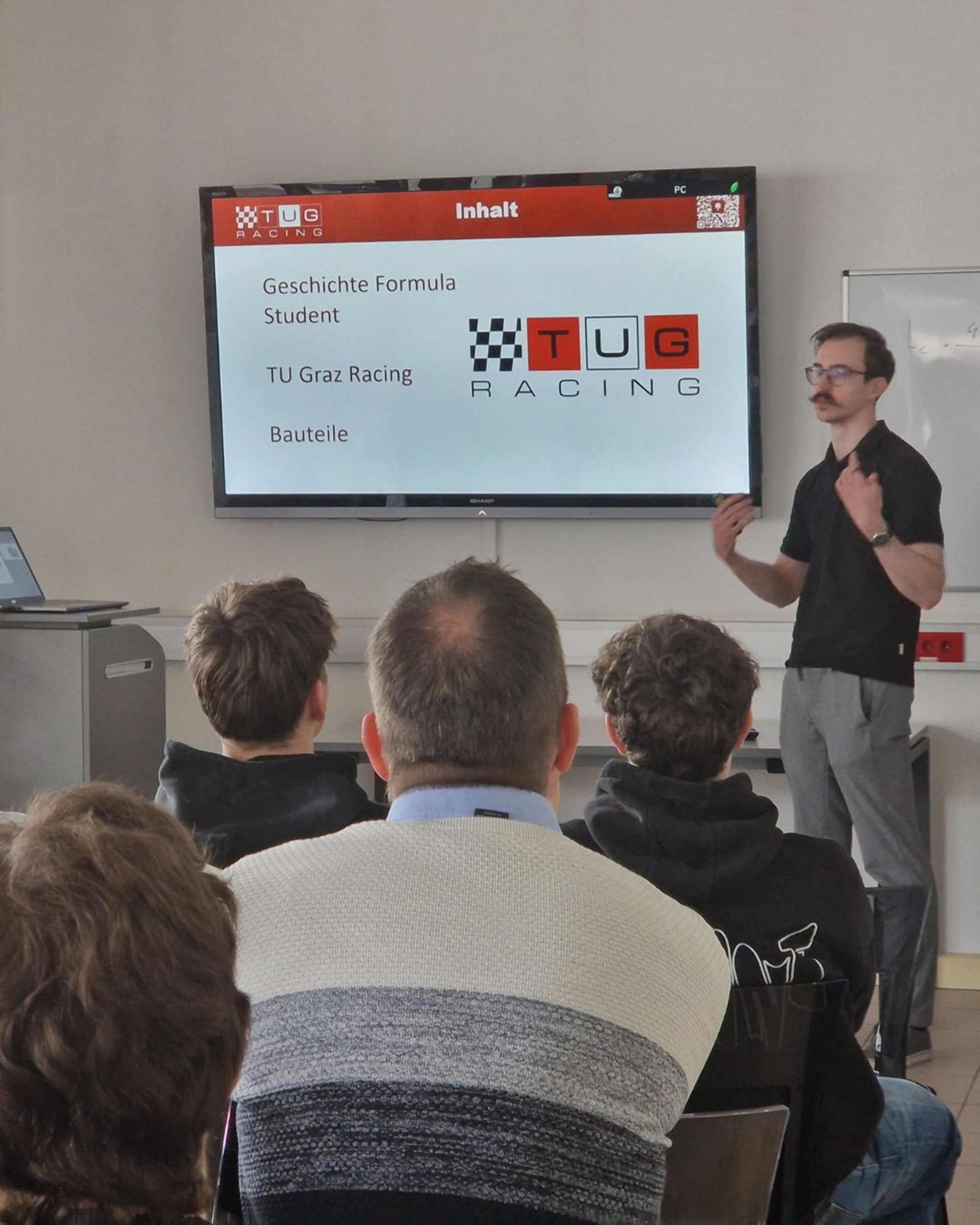 Engaged Q&A sessions, active exchange between teams, pupils and students, and tangible examples from development, simulation, and manufacturing made the afternoon a resounding success. Many thanks to speakers Roman May and Harald Findenig, to the HTL Zeltweg and TU Graz teams, and to all guests for their enthusiasm. We look forward to more events at the intersection of motorsport, lightweight design, and polymer engineering!
