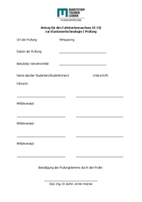 Antrag für den Fahrkostenzuschuss (€ 15) zur Elastomertechnologie I Prüfung Ort der Prüfung: Wimpassing Datum der Prüfung: ______________________________ Benütztes Verkehrsmittel: …