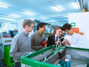 Neben den Vorlesungen finden Übungen und Praktika statt, in denen der Umgang mit Verarbeitungsmaschinen und Messtechnik sowie moderner Simulationssoftware geübt wird. Dadurch lernen die Studierenden das selbstständige Arbeiten an den Anlagen und den Simulationsprogrammen.