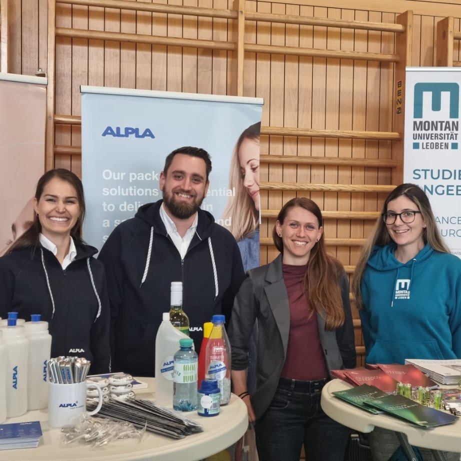 Die Montanuniversität Leoben präsentierte sich Anfang Februar gemeinsam mit ALPLA bei zwei Karrieremessen an Höheren Technischen Lehranstalten (HTLs) in Vorarlberg. Mit Unterstützung der Kunststofftechnik (KT) informierte das Team am 4. Februar an der HTL Bregenz und am 6. Februar an der HTL Dornbirn über Studienmöglichkeiten und Karriereperspektiven. An beiden Tagen waren auch Kunststofftechniker*innen dabei: In Bregenz stand Professor Clemens Holzer den interessierten Schüler*innen für Fragen rund um das Kunststofftechnik-Studium zur Verfügung; Christine Bandl verstärkte das MUL-Team in Dornbirn.