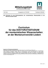 Mitteilungsblatt der Montanuniversität Leoben 156. Stück Ausgegeben am 07.06.2021 Studienjahr 2020/2021 243. Curriculum für das Doktoratsstudium der montanistischen Wissenschaften an der…